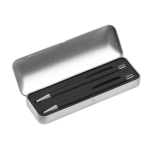 Черный набор Chili Aurora с серебристым футляром включает шариковую ручку и механический карандаш в едином дизайне с мягким soft touch покрытием. Комплект подходит для ежедневной работы и аккуратно смотрится в деловом пространстве. Инструменты удобно лежат в руке, обеспечивают плавное письмо и точные линии, поэтому их можно использовать как в офисе, так и в дорожных условиях.