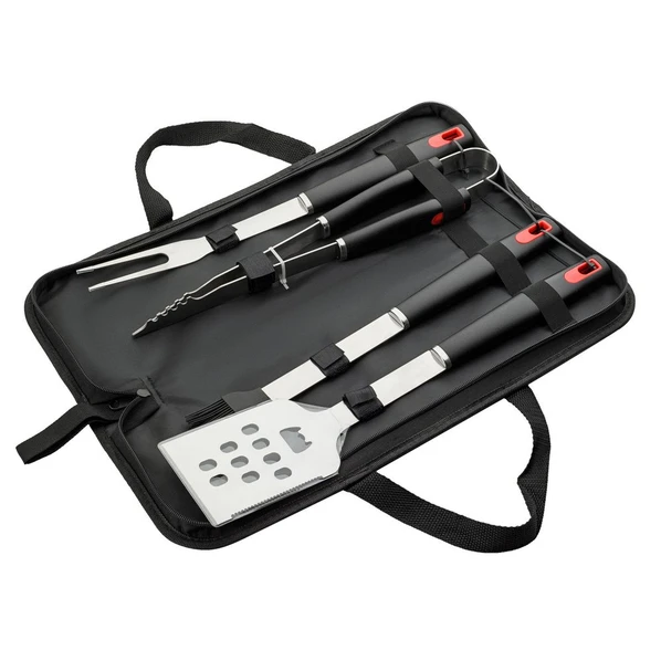 Приборы для барбекю предназначены для приготовления продуктов на гриле, мангале или жаровне. Рабочие части вилки, лопатки и щипцов изготовлены из нержавеющей стали и выдерживают высокие температуры. Приборы имеют оптимальную длину для безопасного использования и петлю для подвешивания.
