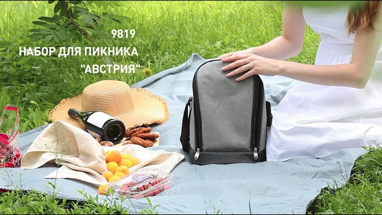 Набор для пикника «Австрия» рассчитан на 2 персоны. Все предметы в наборе фиксируются внутренними резинками.