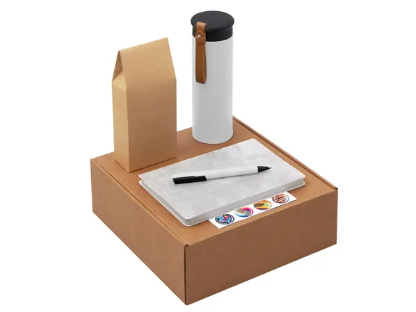 Функциональный и сбалансированный коричнево-белый набор для сотрудников, партнёров или клиентов — отлично подойдёт для welcome-боксов, тимбилдингов, внутренних мероприятий и корпоративных праздников. Состав набора: