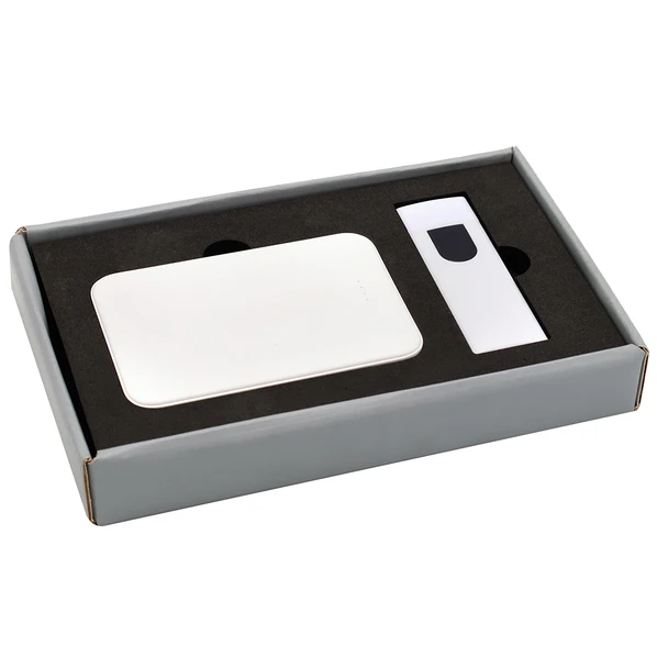 Подарочный белый набор в стильной картонной коробке. Внутри на аккуратном ложементе расположены внешний аккумулятор емкостью 5000 mAh и электронная зажигалка. Компактный и мощный внешний аккумулятор обеспечивает надежное подзаряжание мобильных устройств в любое время, а современная электронная зажигалка сочетает в себе удобство и безопасное использование без огня. Этот набор станет практичным и элегантным подарком для людей, ценящих функциональность и стиль.