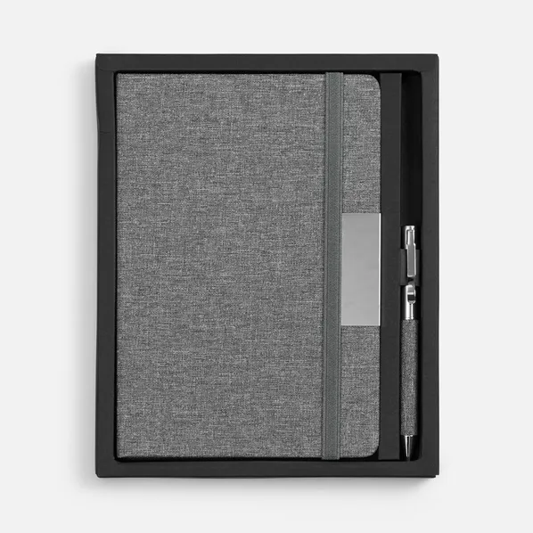 Набор Fabrelly черно-серого цвета идеально подойдет в качестве корпоративного подарка.