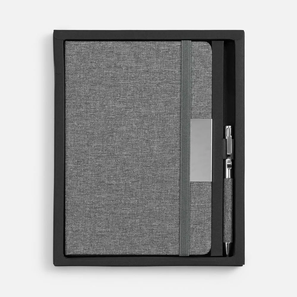 Набор Fabrelly: блокнот в линейку и металлическая шариковая ручка, серый / черный