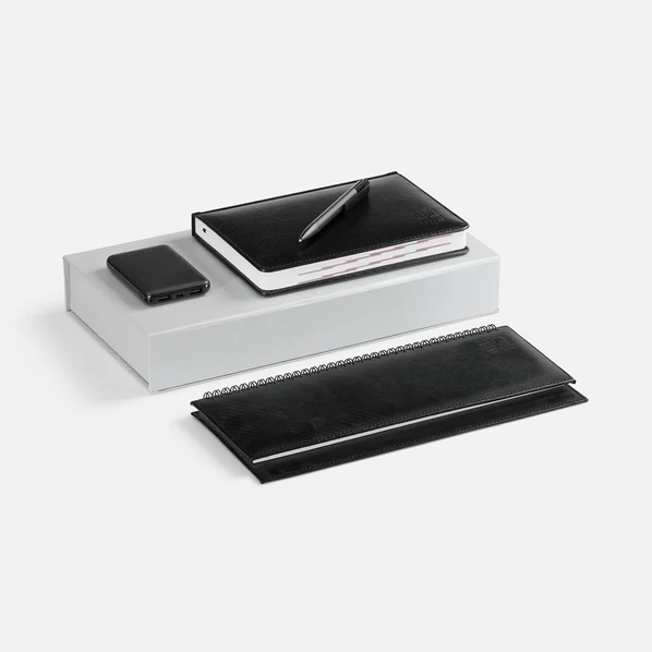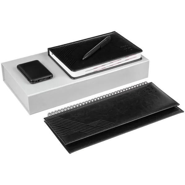 Комплект собран в едином дизайне и подчеркнет внимание компании к деталям. Уместен как самостоятельный бизнес-подарок для сотрудников и партнеров.