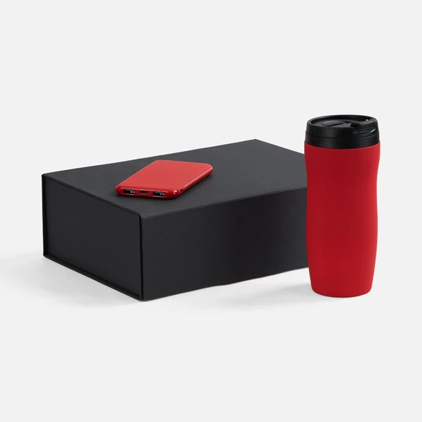 Красный набор из компактного аккумулятора и термостакана Formisto — практичный комплект для современных и активных людей. Он сочетает в себе функциональность и удобство: гаджет всегда будет на оптимальном уровне зарядки, а любимый напиток — под рукой, чтобы порадовать в любом месте.