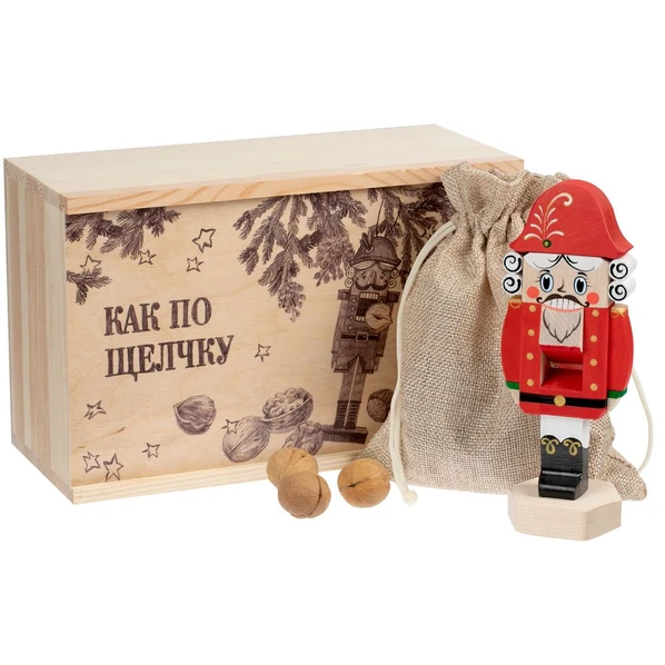 Праздничный набор с Щелкунчиком позволит окунуться в сказочный мир детства. Аккуратная деревянная коробочка таит в себе грецкие орехи и идеальную фигурку для их мгновенного раскалывания.