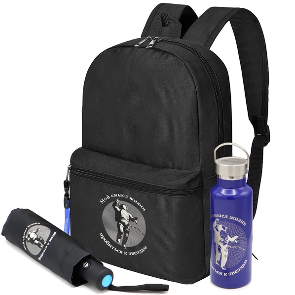Набор «Космос»: рюкзак, зонт, термобутылка, ремувка, черный