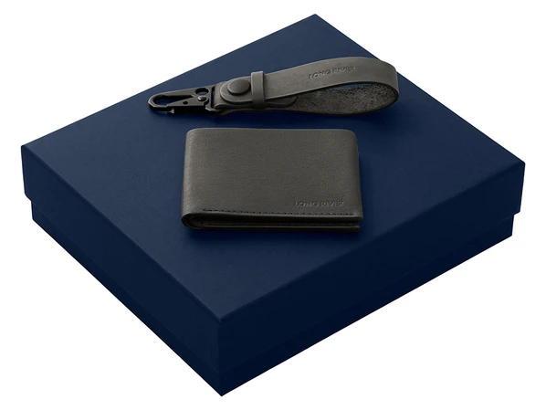 Набор кожаный Long River: кошелек, ремешок для ключей, черный / синий