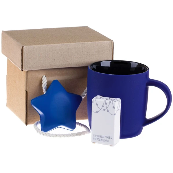 Набор Less Stress: кружка soft touch, гирлянда, антистресс, синий - фото № 1
