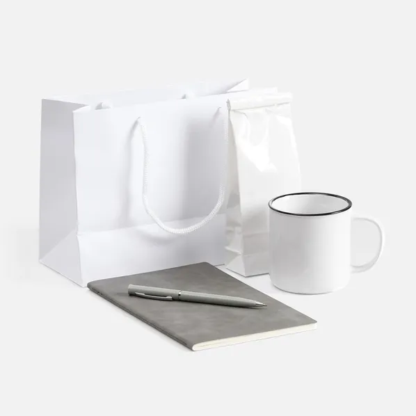 Набор Luba: блокнот А5, ручка шариковая, чай черный, кружка, серый / белый