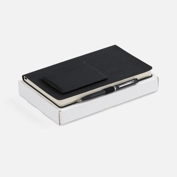 Набор выполнен в черном цвете, что придает ему строгость и универсальность. Он станет отличным бизнес-подарком для сотрудников, клиентов или партнеров.