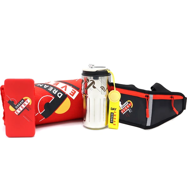 Набор «Мечтай»: поясная сумка, плед, внешний аккумулятор, термокружка, красный