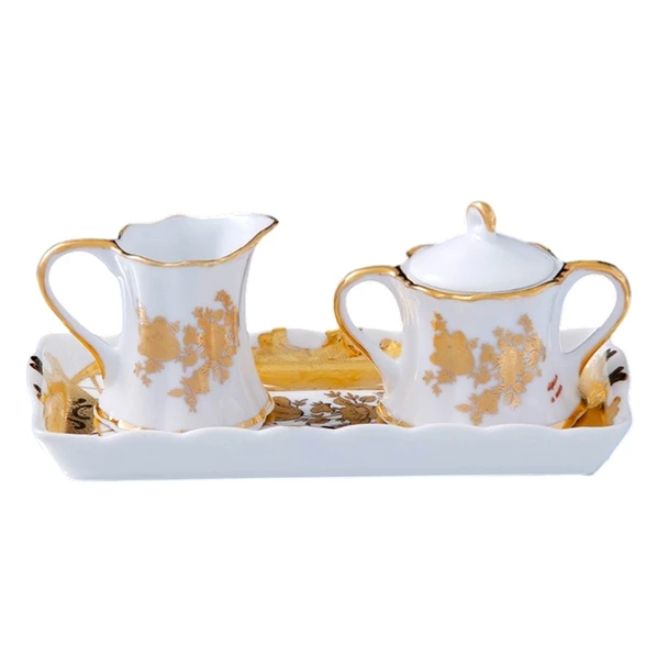 Набор «Мелисса»: молочник и сахарница на блюдце, золотистый / белый
