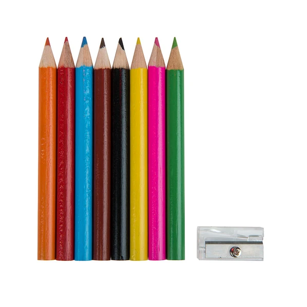Подарочный канцелярский набор Migal. Цвета карандашей: голубой, красный, зеленый, желтый, оранжевый, розовый, коричневый, черный.