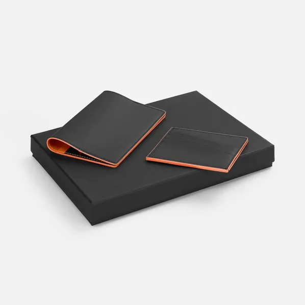 Стильный черно-оранжевый подарочный набор Multimo Mini состоит из обложки на паспорт и картхолдера из искусственной кожи.