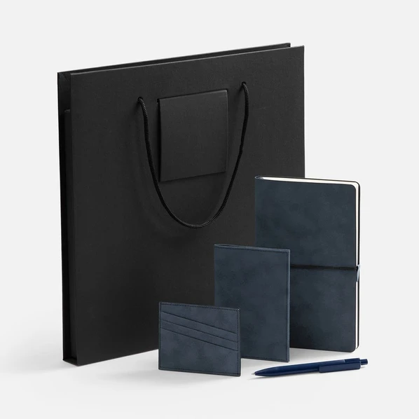 Набор с ежедневником и персональными аксессуарами из коллекции Nubuk в подарочной коробке с ручками одинаково хорошо исполнит роль как делового, так и личного подарка. Глубокие синие оттенки придают ему стиль и элегантность.
