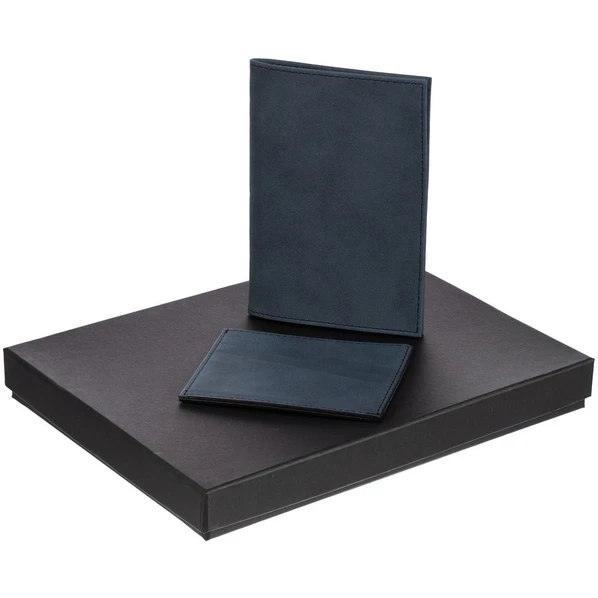 Набор Nubuk Mini: обложка для паспорта и чехол для карточек, синий
