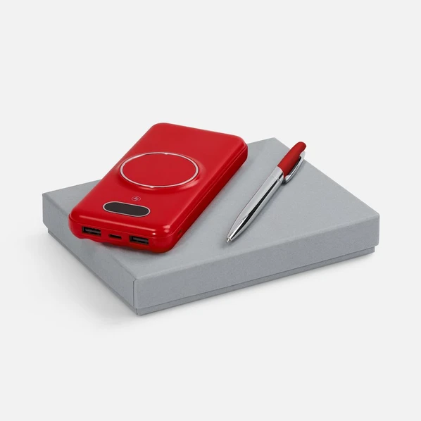 Набор Omni Dagger: внешний аккумулятор 10000 mAh, ручка шариковая, красный - фото № 1
