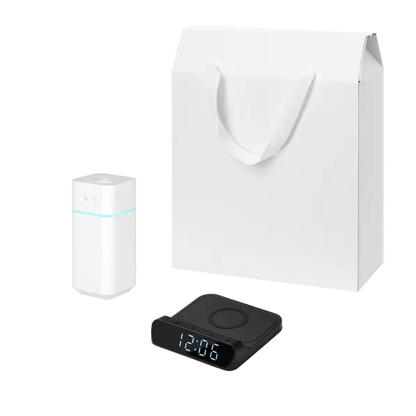 Подарочный черно-белый набор Cloud NEO, Rigel сочетает в себе практичные и стильные аксессуары для дома и офиса. В набор входят увлажнитель воздуха и беспроводное зарядное устройство. Такой комплект станет отличным выбором для современного ритма жизни, сочетая заботу о комфорте и технологичность.