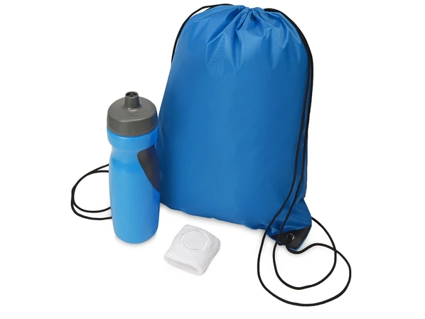 Набор подарочный для спорта Flash: бутылка для воды, рюкзак-мешок, напульсник, синий