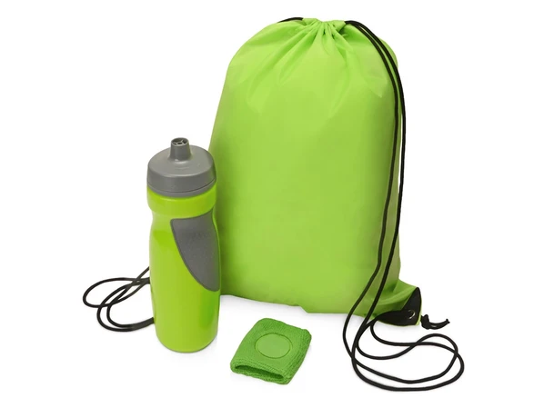 Набор подарочный для спорта Flash: бутылка для воды, рюкзак-мешок, напульсник, зеленый