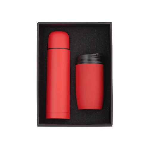 Термос рассчитан на длительное сохранение температуры напитков и имеет удобную форму для переноски. Термостакан подходит для повседневного использования и комфортен в удержании благодаря покрытию soft touch. Коробка завершает оформление и делает набор готовым к вручению.