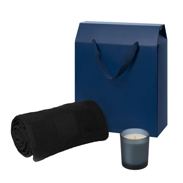 Набор подарочный Enigma, Cella Soft: свеча, вязаный плед, синий фото