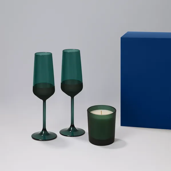 Подарочный зелено-синий набор Enigma, Emerald — элегантное сочетание для создания особой атмосферы. Два бокала для шампанского и свеча в стильном оформлении подчеркнут торжественность момента и станут отличным подарком для праздников и корпоративных мероприятий.