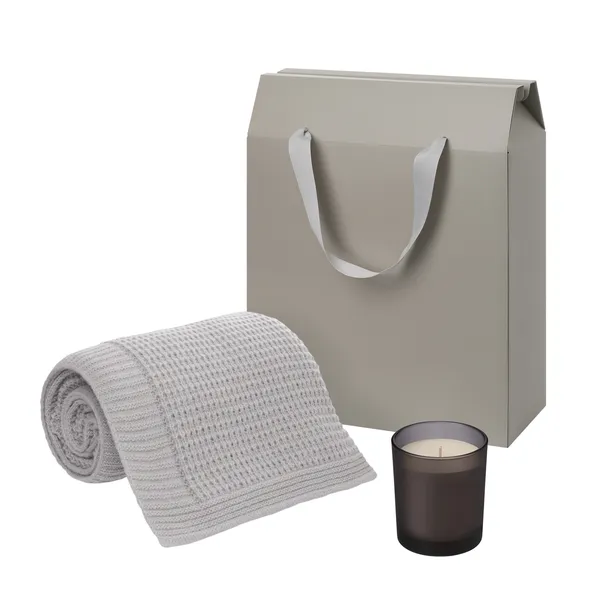 Набор подарочный Enigma, Malta Soft: свеча, вязаный плед, серый