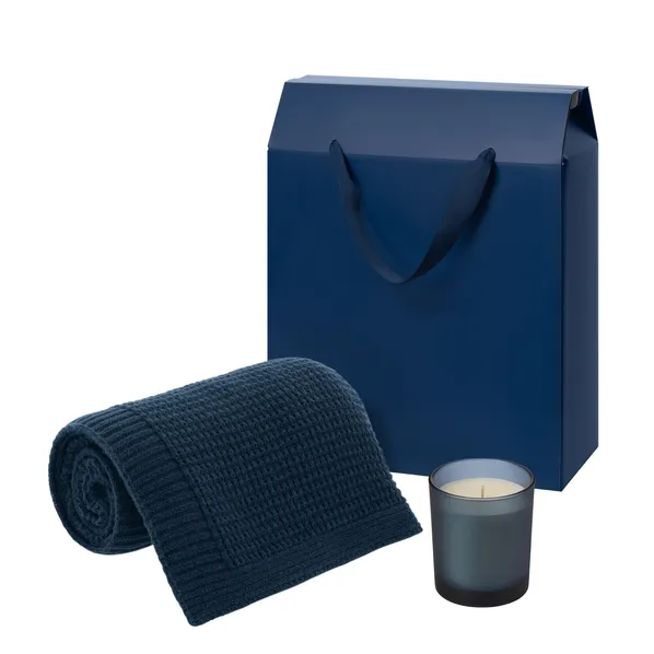 Набор подарочный Enigma, Cella Soft: свеча, вязаный плед, синий фото