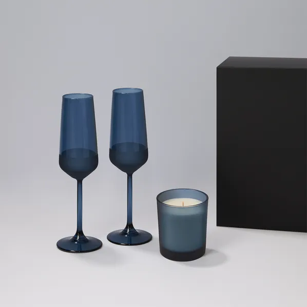 Подарочный сине-черный набор Enigma, Sapphire — элегантное сочетание для создания особой атмосферы. Два бокала для шампанского и свеча в стильном оформлении подчеркнут торжественность момента и станут отличным подарком для праздников и корпоративных мероприятий.