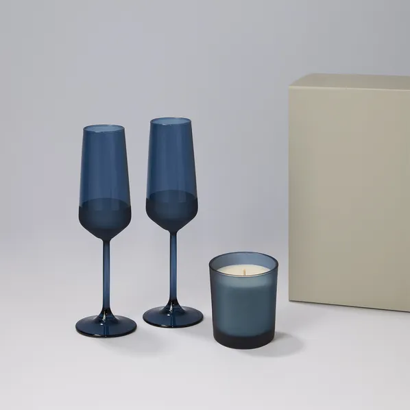 Подарочный сине-серый набор Enigma, Sapphire — элегантное сочетание для создания особой атмосферы. Два бокала для шампанского и свеча в стильном оформлении подчеркнут торжественность момента и станут отличным подарком для праздников и корпоративных мероприятий.