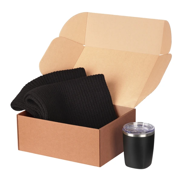 Набор подарочный Forges: вязаный шарф, термокружка, черный