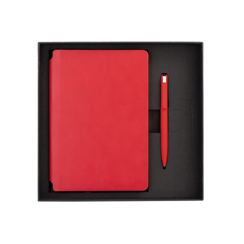 Подарочный красный набор объединяет недатированный ежедневник и шариковую ручку, оформленные в аккуратной коробке с шубером. Комплект подходит для рабочих задач, встреч и корпоративных программ. Аксессуары подобраны так, чтобы их было удобно использовать каждый день.