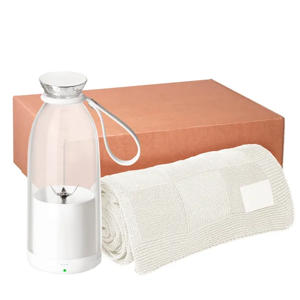 Подарочный белый набор Frutta, Cella — практичное и стильное решение для ценителей уюта и заботы о себе. Вязаный плед подарит тепло и комфорт, а портативный блендер позволит приготовить свежие напитки в любое время. Универсальный вариант для дома, отдыха или подарка сотрудникам.