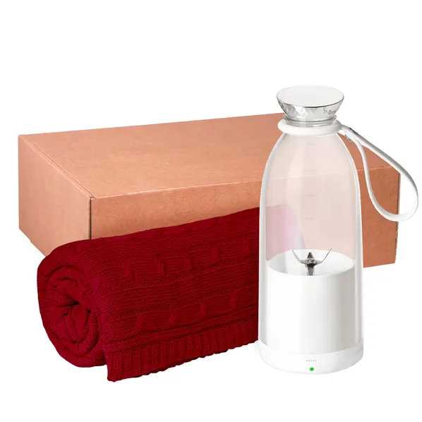 Подарочный красный набор Frutta, Fado — практичное и стильное решение для ценителей уюта и заботы о себе. Вязаный плед подарит тепло и комфорт, а портативный блендер позволит приготовить свежие напитки в любое время. Универсальный вариант для дома, отдыха или подарка сотрудникам.