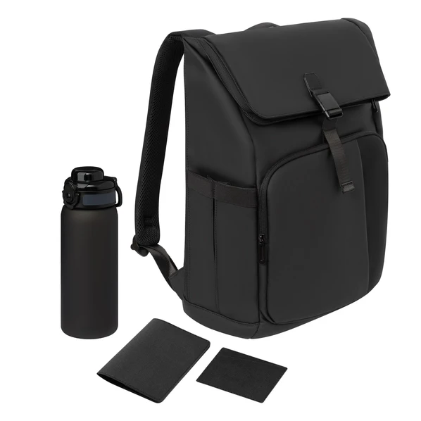 Набор подарочный Grand: обложка на паспорт, картхолдер, бутылка для воды, рюкзак, черный