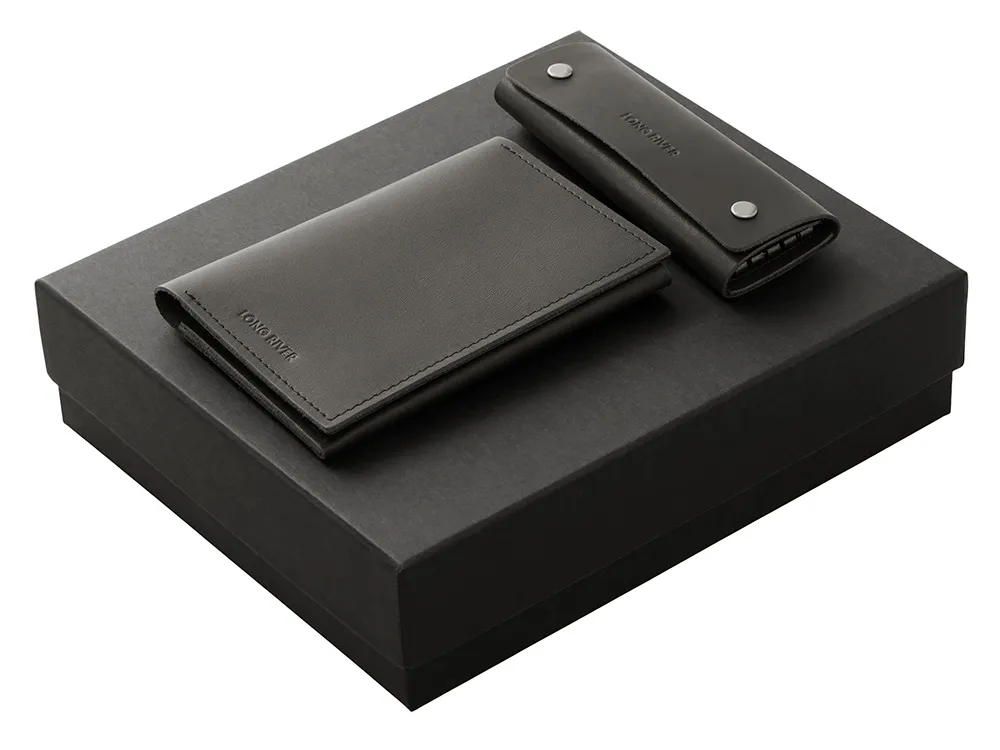 Комплектация: обложка для паспорта, ключница с 4 карабинами. Упаковка: Стильная коробка из переплетного картона, готовая к персонализации.