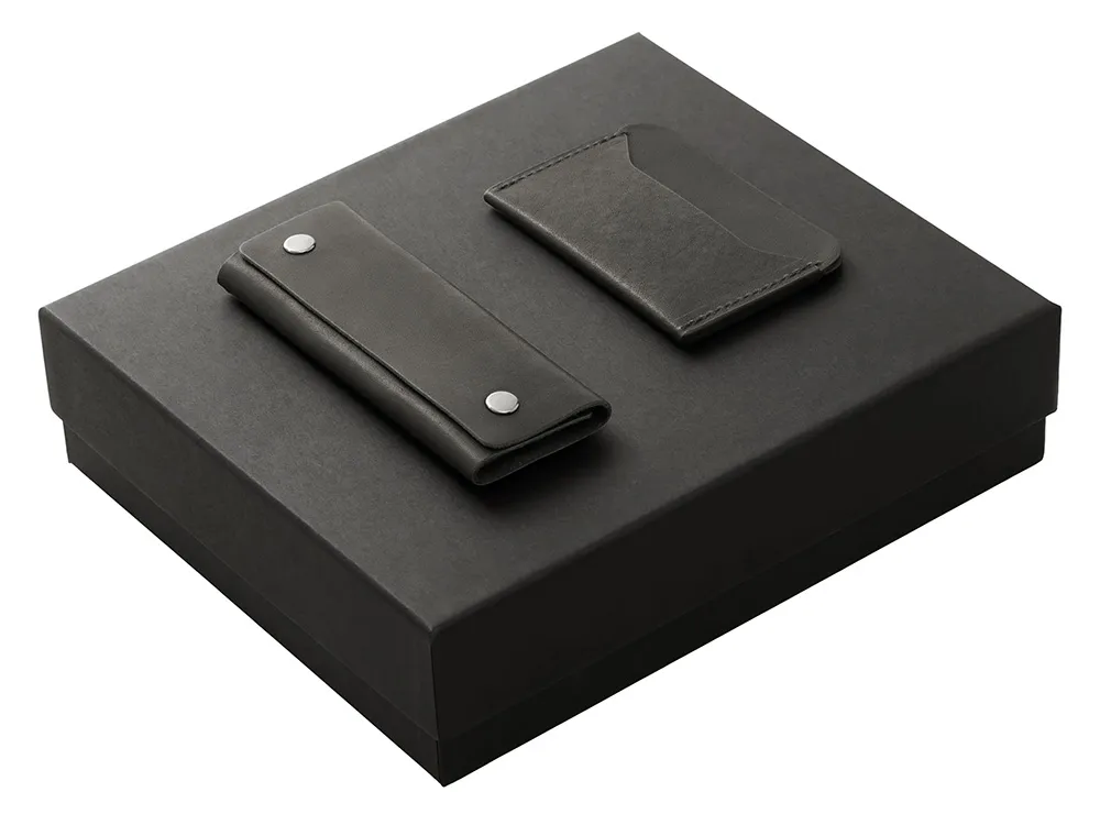 Комплектация: картхолдер Отра, ключница Тахо с 4 карабинами. Упаковка: Качественная коробка из переплетного картона, готовая к персонализации.