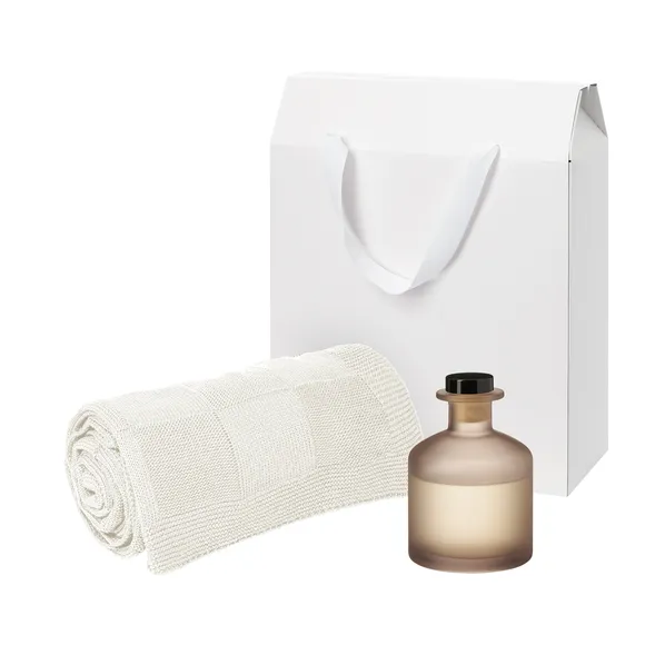 Подарочный бежевый набор Mizu, Cella — стильное сочетание уюта и ароматерапии. Мягкий плед и ароматический диффузор создадут расслабляющую атмосферу и станут прекрасным акцентом в интерьере. Такой набор подойдет как корпоративный подарок или знак внимания близким.
