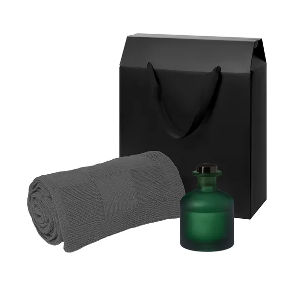 Подарочный серо-зеленый набор Mizu, Cella — стильное сочетание уюта и ароматерапии. Мягкий плед и ароматический диффузор создадут расслабляющую атмосферу и станут прекрасным акцентом в интерьере. Такой набор подойдет как корпоративный подарок или знак внимания близким.