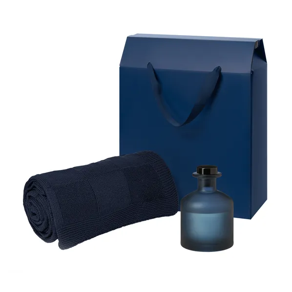 Подарочный синий набор Mizu, Cella — стильное сочетание уюта и ароматерапии. Мягкий плед и ароматический диффузор создадут расслабляющую атмосферу и станут прекрасным акцентом в интерьере. Такой набор подойдет как корпоративный подарок или знак внимания близким.