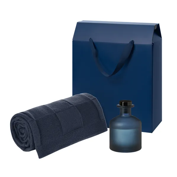 Подарочный синий набор Mizu, Cella Soft — стильное сочетание уюта и ароматерапии. Мягкий плед и ароматический диффузор создадут расслабляющую атмосферу и станут прекрасным акцентом в интерьере. Такой набор подойдет как корпоративный подарок или знак внимания близким.