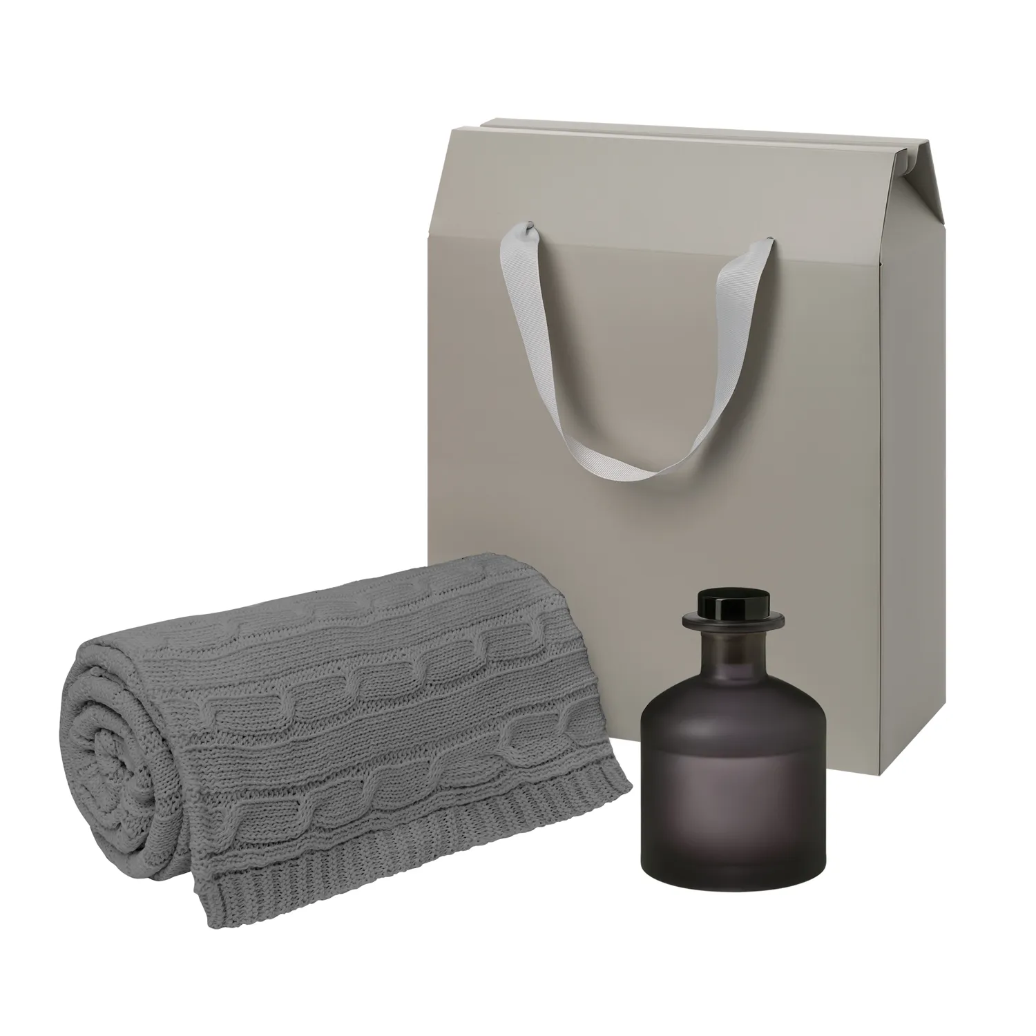 Подарочный серо-черный набор Mizu, Fado — стильное сочетание уюта и ароматерапии. Мягкий плед и ароматический диффузор создадут расслабляющую атмосферу и станут прекрасным акцентом в интерьере. Такой набор подойдет как корпоративный подарок или знак внимания близким.