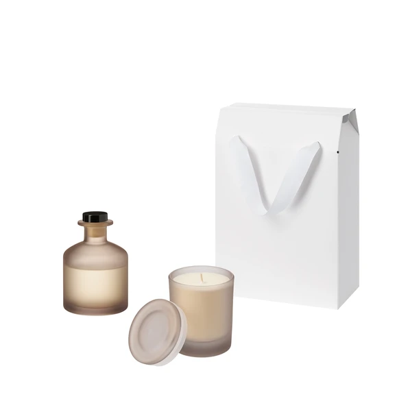 Набор подарочный Mizu: свеча, ароматический диффузор, бежевый / белый