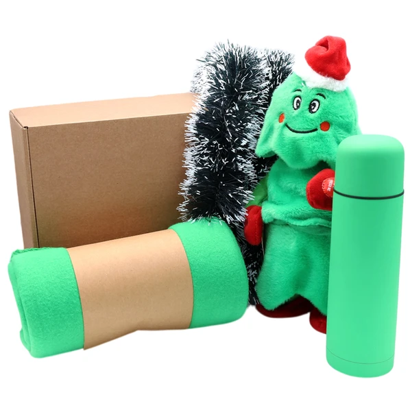 Набор подарочный «Музыкальный»: плед, термос, мягкая игрушка, новогодняя мишура, зеленый
