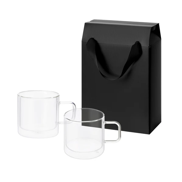 Прозрачно-черный подарочный набор Luna производства бренда Portobello состоит из двух стеклянных кружек с коробке-пенале.