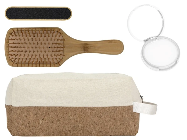 Большой вместительный несессер на молнии изготовлен из натуральных материалов - хлопка и пробки.