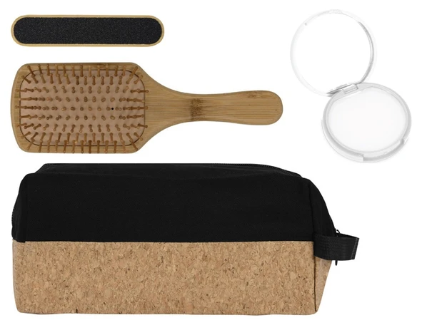 Большой вместительный несессер на молнии изготовлен из натуральных материалов - хлопка и пробки.