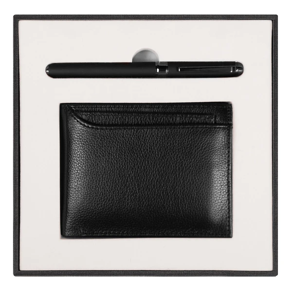 Набор подарочный Solution Superior Duo черного цвета с ручкой роллером и кошельком с картхолдером.